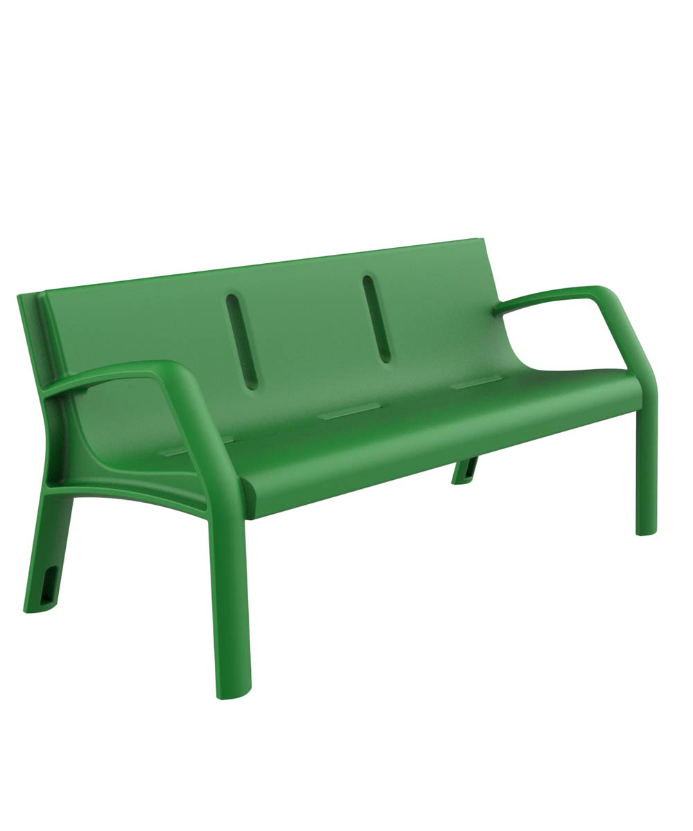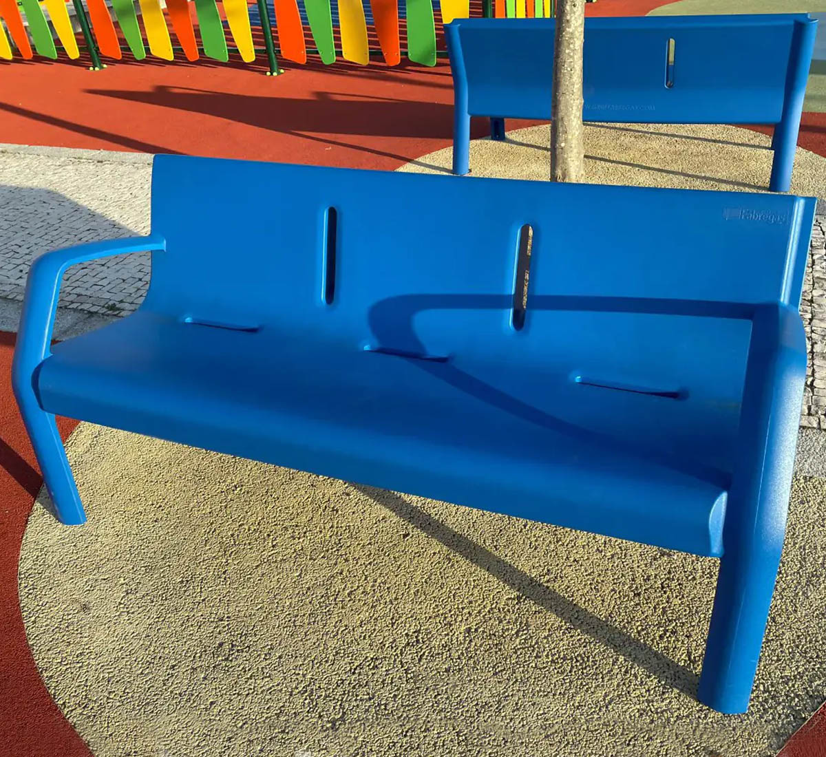 Presenta la combinación de polietileno de alta densidad (HDPE) en la totalidad del banco, siendo el mismo de una pieza.