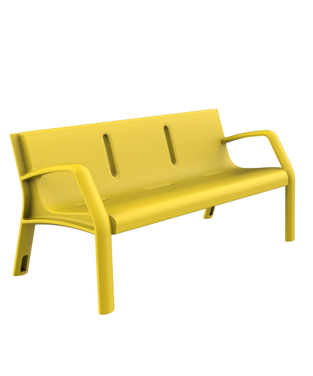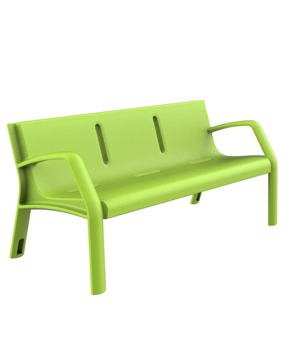 Polietileno creado a partir de la combinación de elastómeros pensados para ser un elemento robusto y duradero. Está tratado con UV, se trata de un producto antigrafitti, su material es poroso, lo que provoca que no sea posible pintarlo de forma permanente con sprais, además, gracias al propio material es muy resistente y difícil de romper.