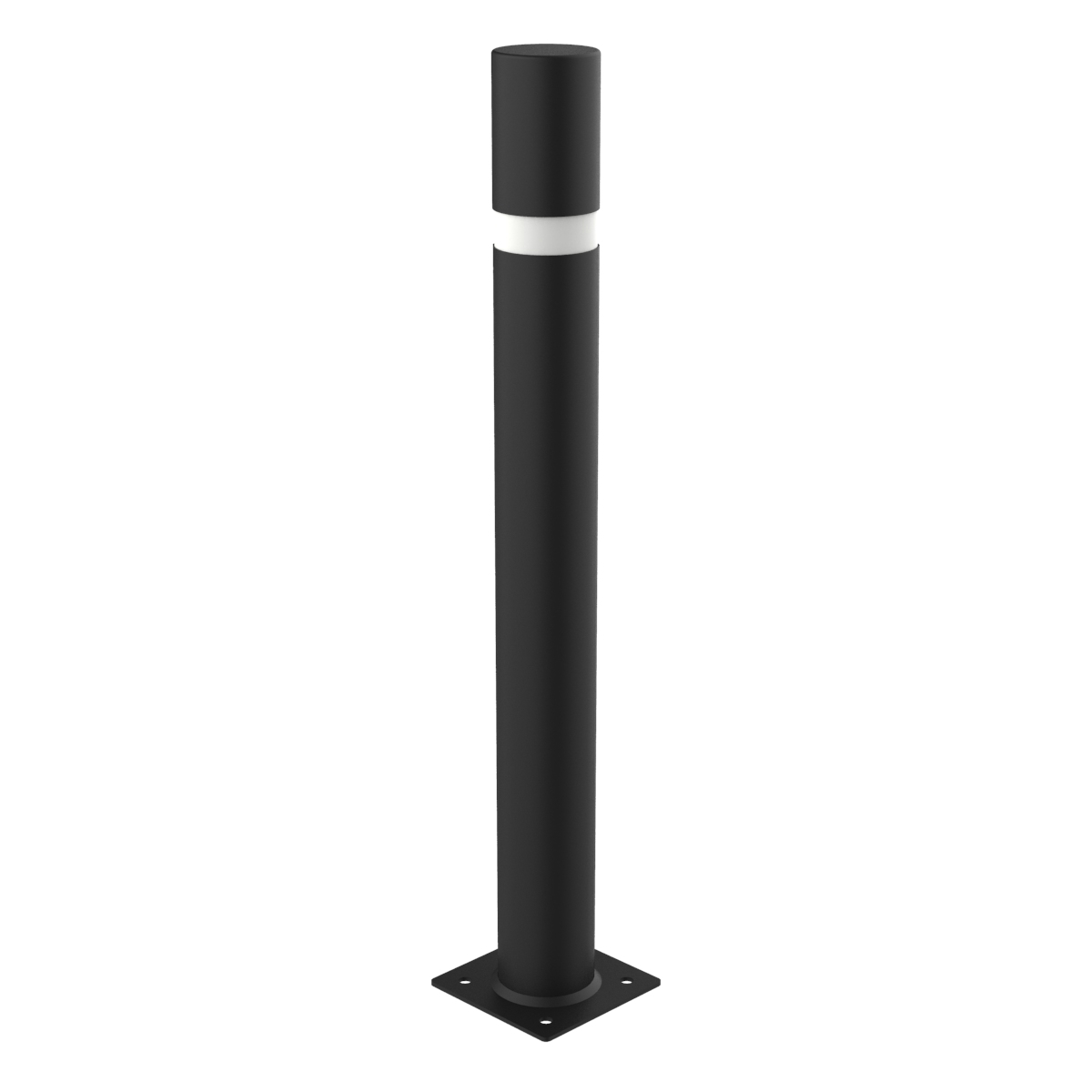 Pilona modelo Barcelona 90 con tubo de acero de Ø 89 mm, con pletina para atornillar al suelo.