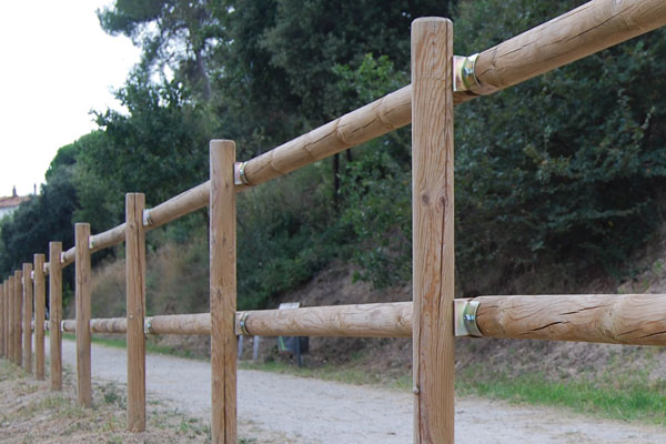 VALLA MADERA POSTE VERTICAL DIAMETRO 100 Y HORIZONTALES DIAMETRO 80 CON ABRAZADERAS Y TORNILLOS PARA FORMACION DE VALLA