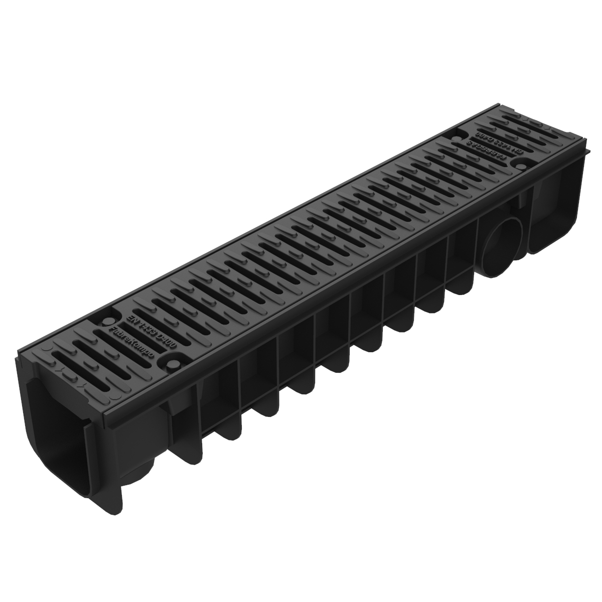 Canal en polipropileno y reja fabricada en poliamida reforzada con fibra de vidrio norma EN-1433 clase D-400. 15 cm ancho