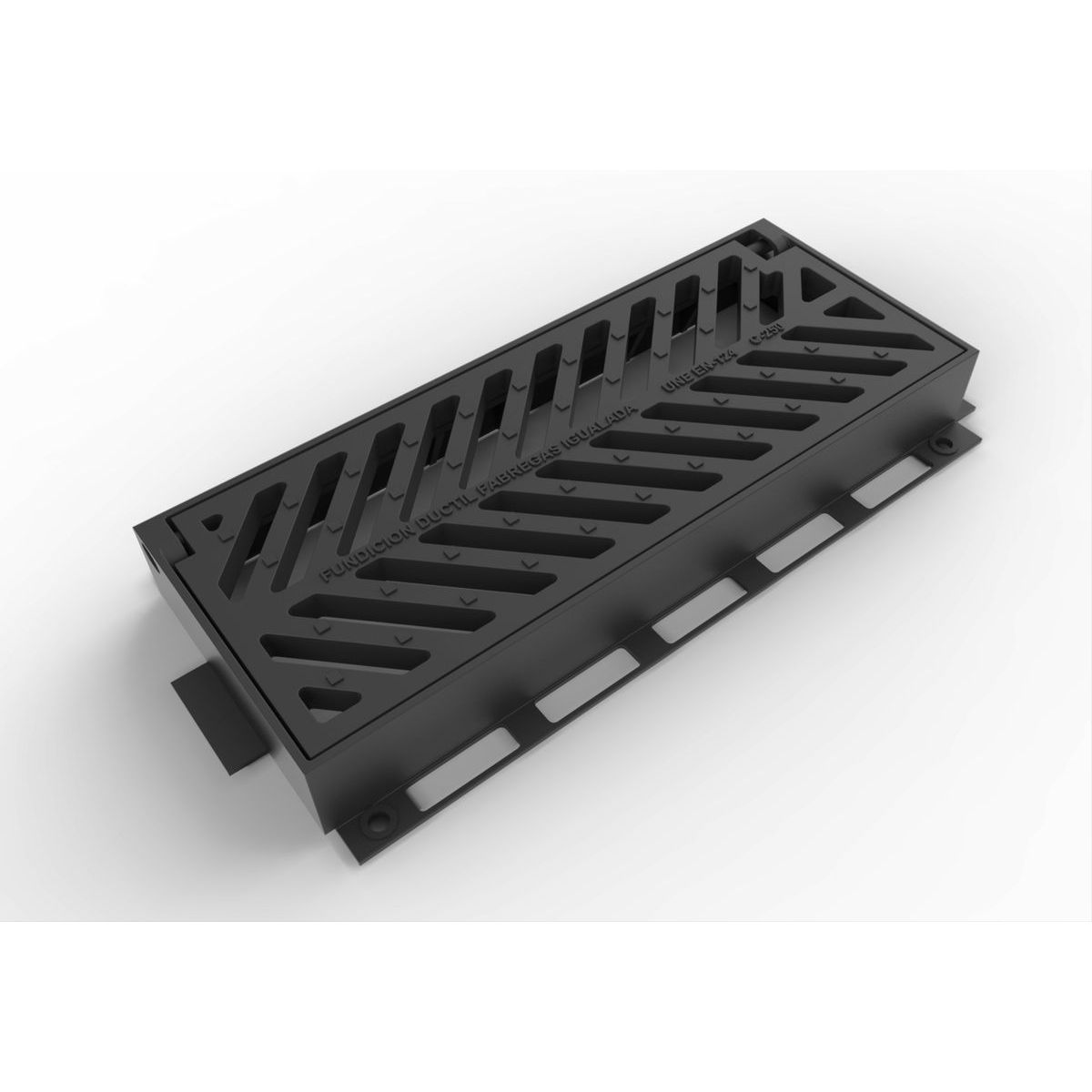 Rejilla abatible, reversible al sentido del agua. Encadenable, con agujeros de 25 mm. Con Resistencia C250