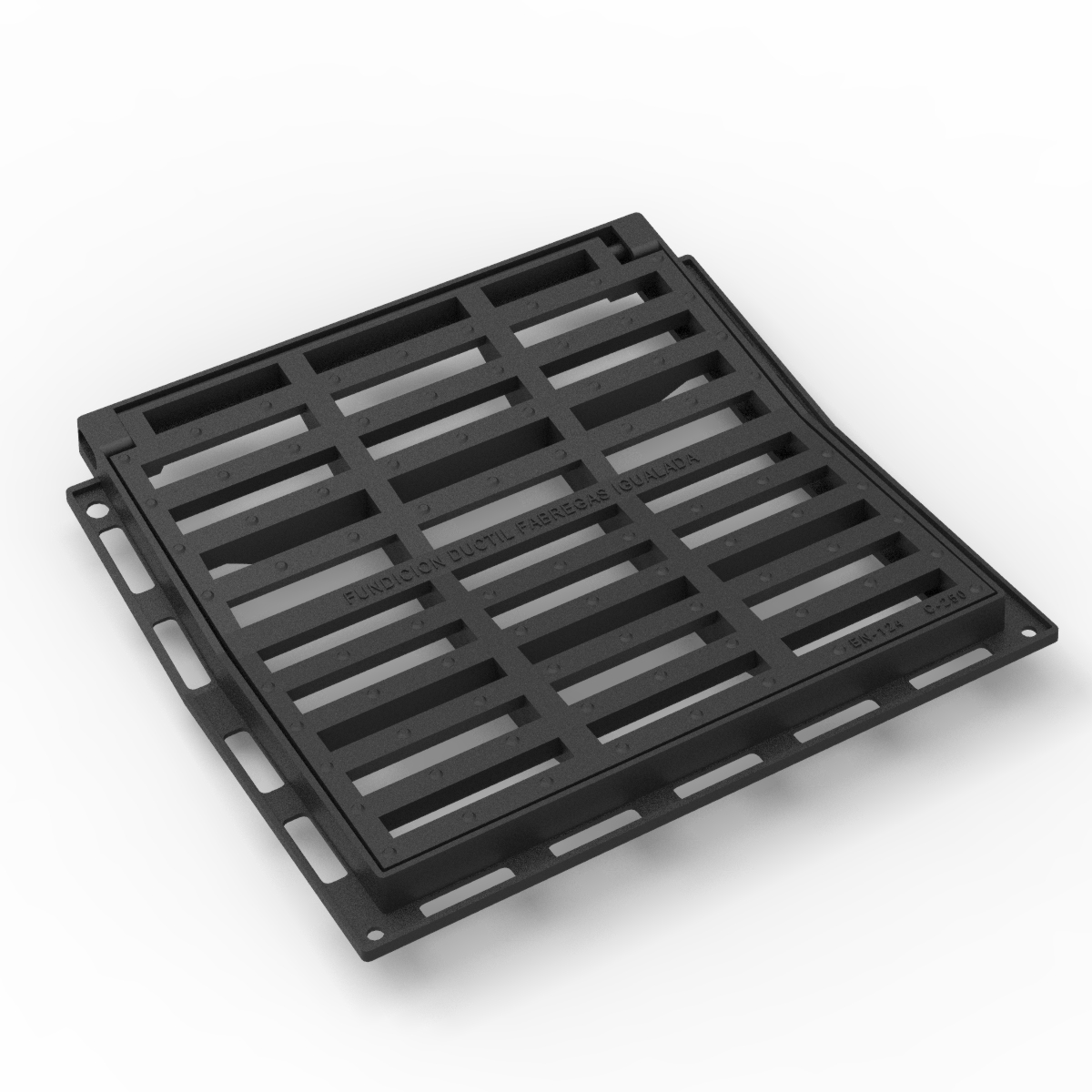 Reja y marco en V Cuadrada imbornal abatible en fundicion D-12C-V