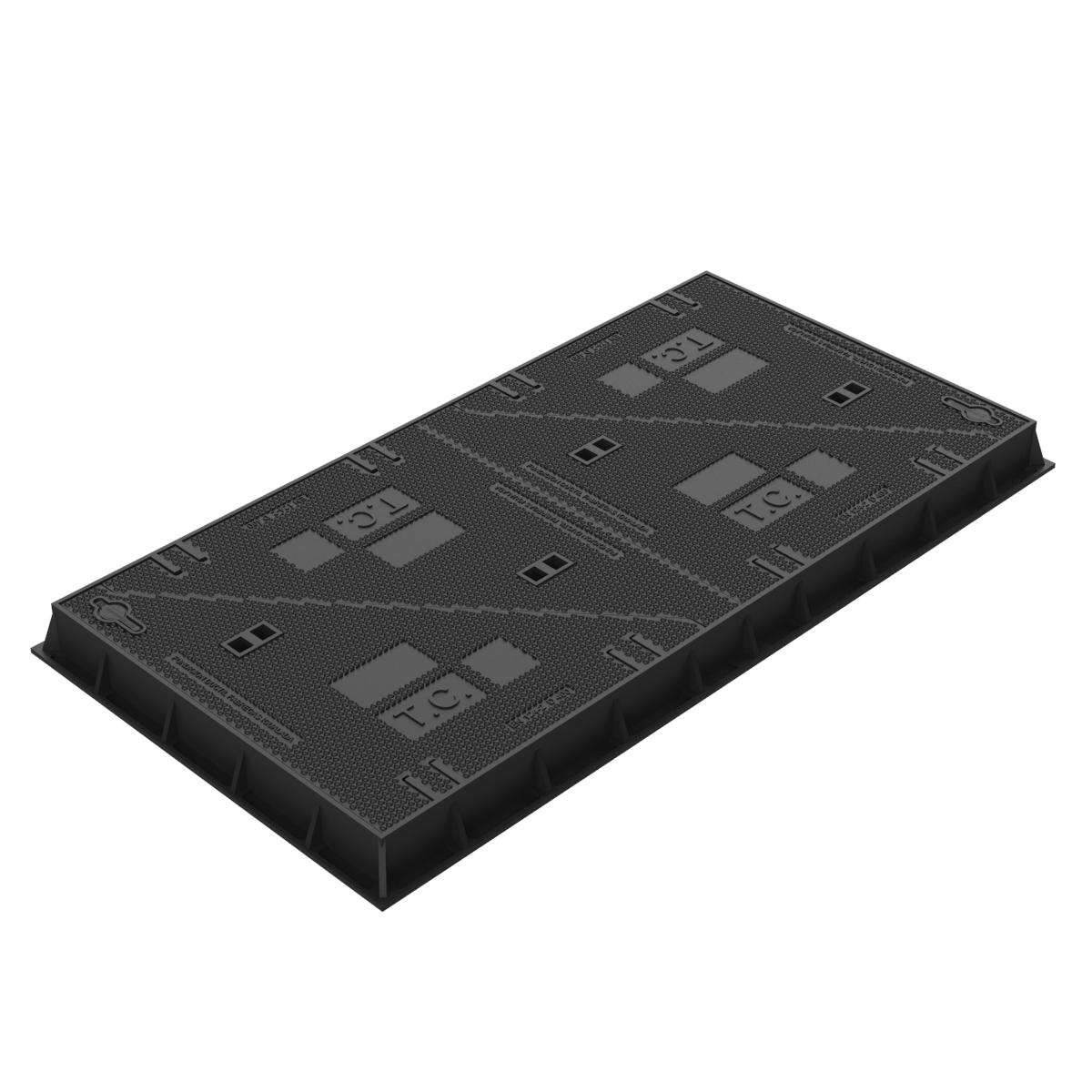 Tapa cuadruple abatible y con marcos de 1.650 x 867 x 103 mm. para 40 Tn., de carga de rotura. Cumple con la norma EN 124-2 Clase D 400.